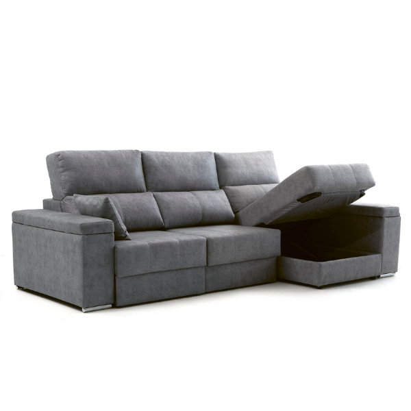 La chaiselongue siempre va con arcón y este modelo lleva de serie arcón en ambos brazos, «todos los espacios disponibles para guardar cosas siempre vienen bien».
