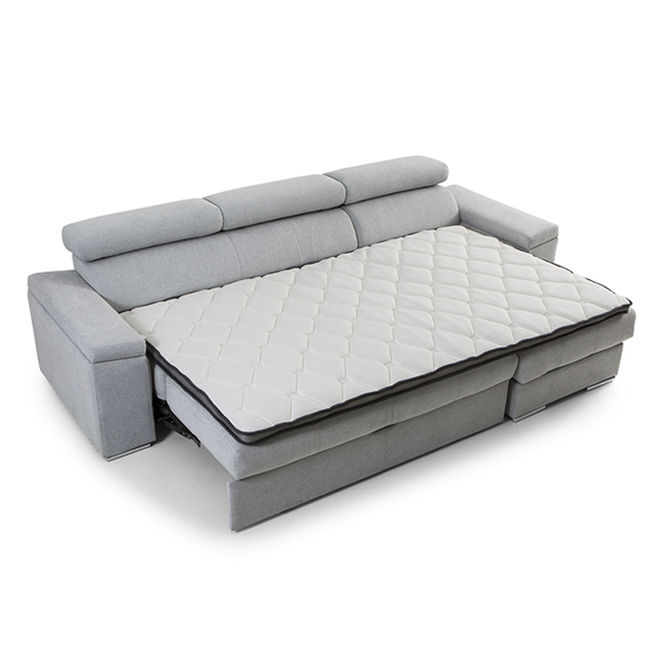 Una de las características más destacadas del Sofá Drago Cama es su sistema de apertura de estructura metálica, que permite convertir el sofá en una cama de manera rápida y sin esfuerzo. Este mecanismo es robusto y duradero, garantizando un uso prolongado y sin complicaciones.