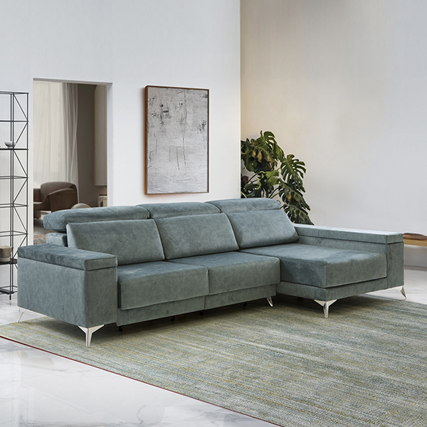 Su estructura está construida con pino gallego vaporizado y tablero de partículas certificado, ofreciendo la máxima garantía de resistencia y estabilidad. Además, el sofá incluye patas de metal de serie, con la opción de elegir patas de madera en acabados nogal, plata o wengué, sin coste adicional, adaptándose a cualquier estilo de decoración.