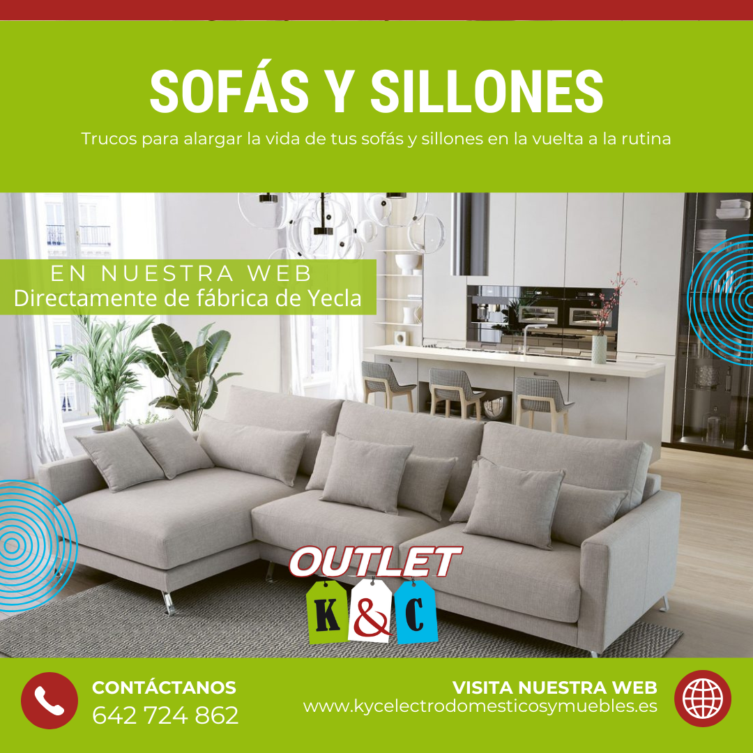 En K&C Electrodomésticos y Muebles te ofrecemos sofás y sillones de calidad DIRECTAMENTE DE FÁBRICA (Yecla), pensados para resistir el día a día de tu hogar, además de consejos prácticos para cuidarlos.